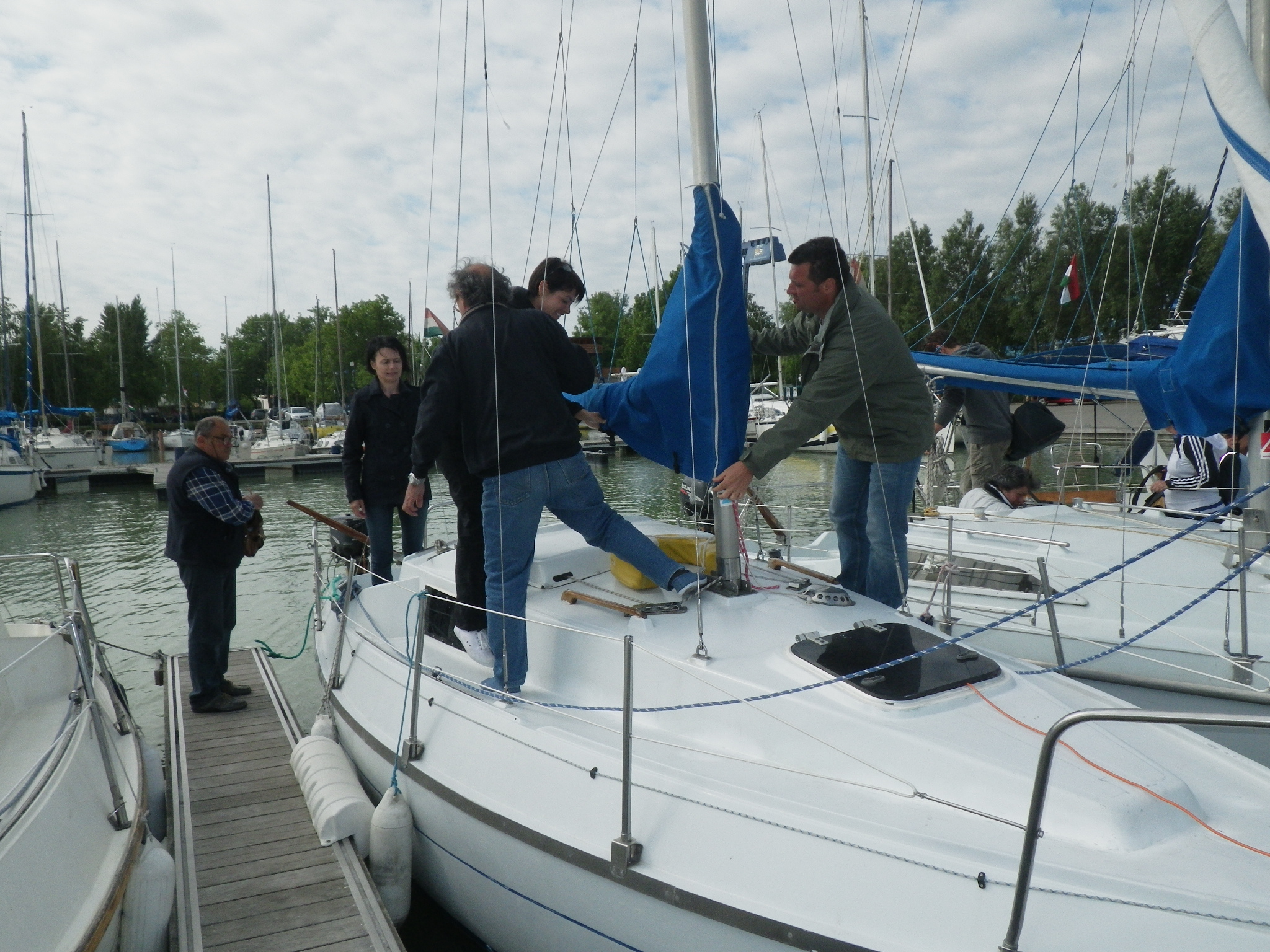 A csapat szorgalmasan ismerkedik a vitorlázás titkaival. |
