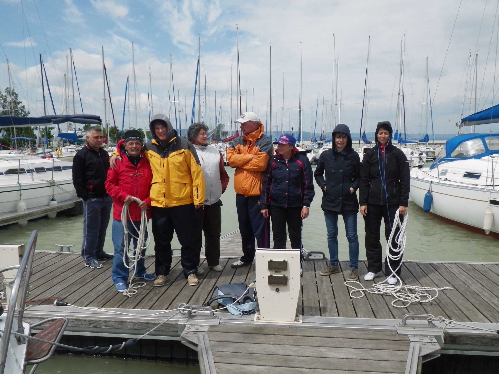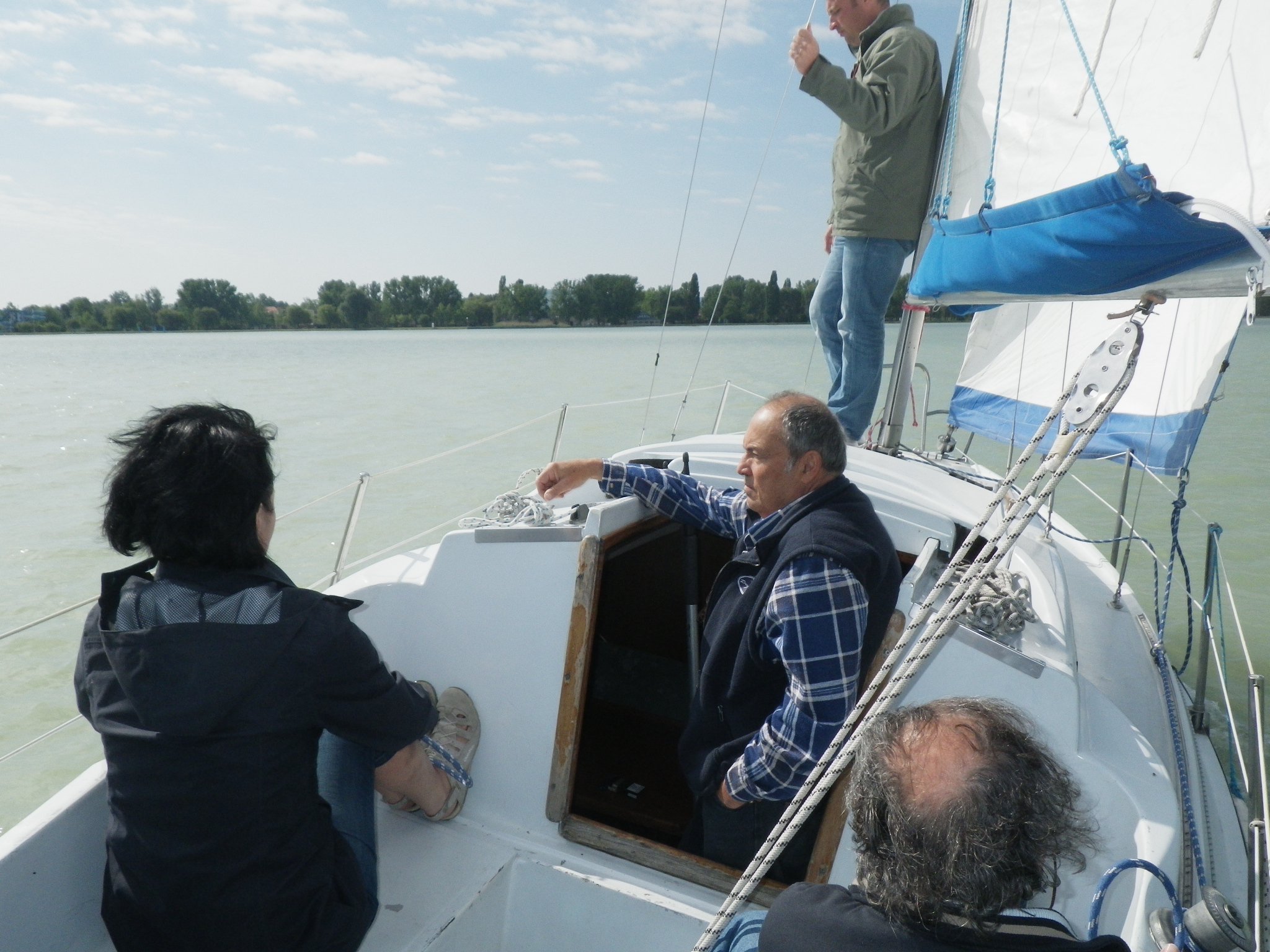 A csapat szorgalmasan ismerkedik a vitorlázás titkaival. |
